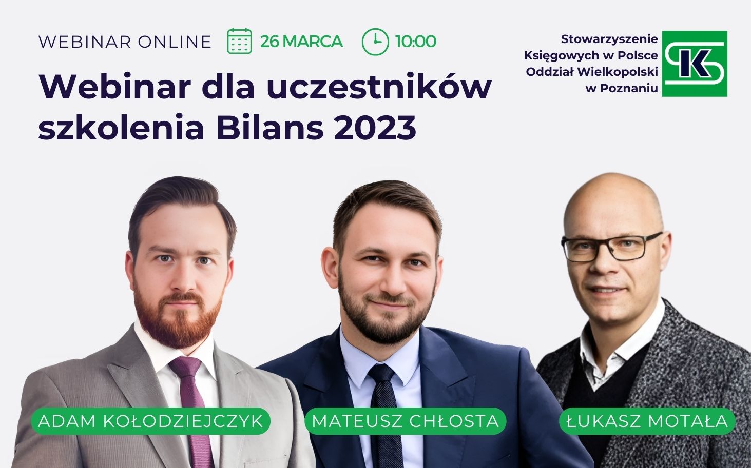 - Łukasz Motała - Członek Komitetu Standardów Rachunkowości. Posiada wieloletnie doświadczenie w prowadzeniu ksiąg rachunkowych, sporządzaniu sprawozdań finansowych jako główny księgowy lub dyrektor finansowy. Wieloletni wykładowca Stowarzyszenia Księgowych w Polsce.
