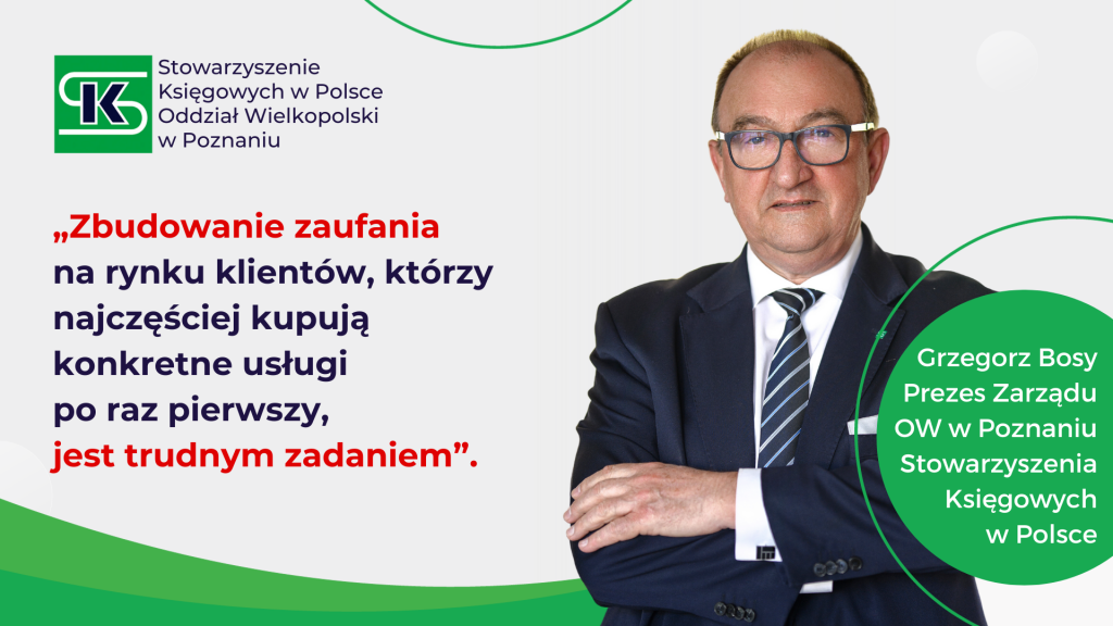 – Problem w tym, że biura rachunkowego jako dostawcy określonych, bardzo specjalistycznych usług mających duże znaczenie dla biznesu, nie zmienia się często – podkreśla Prezes Zarządu Oddziału Wielkopolskiego w Poznaniu SKwP. – Wielu przedsiębiorców korzysta z usług biura rachunkowego wybranego jeszcze przed rejestracją działalności. Nietrudno więc wyobrazić sobie, że zbudowanie zaufania na rynku klientów, którzy najczęściej kupują konkretne usługi po raz pierwszy, jest trudnym zadaniem – zwraca uwagę.