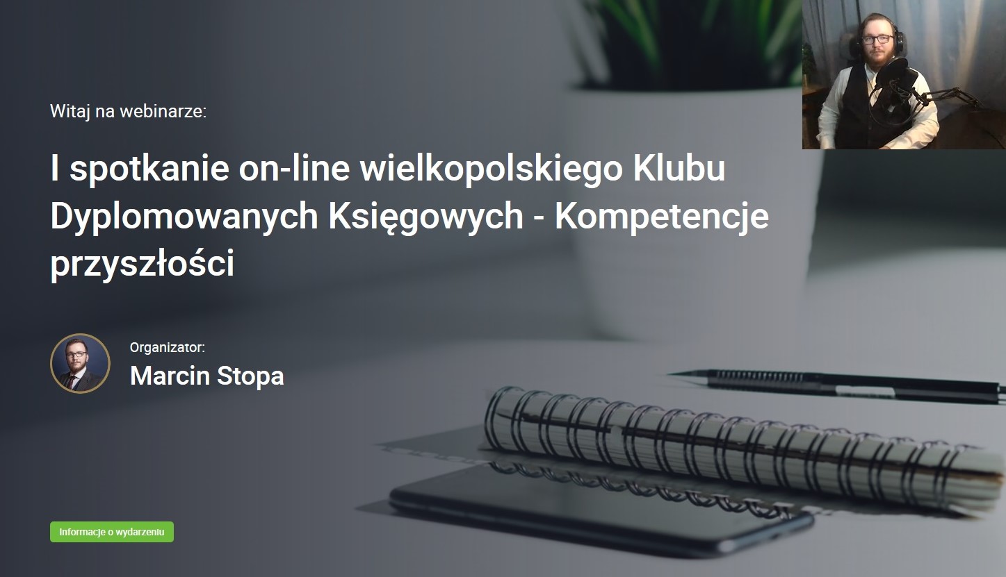 W ostatni czwartek marca b.r., odbyło się pierwsze spotkanie on-line Klubu Dyplomowanych Księgowych, Wielkopolskiego Oddziału SKwP. Gościem oraz prelegentem spotkania, był Marcin P. Stopa CEO SeeWidely. Celem spotkania było uświadomienie Dyplomowanym Księgowym, jak zmienił się obraz współczesnych kompetencji, przedstawienie sposobów wzmacniania i rozwoju swoich kompetencji oraz poznanie kluczowych kompetencji dla zawodu księgowego.